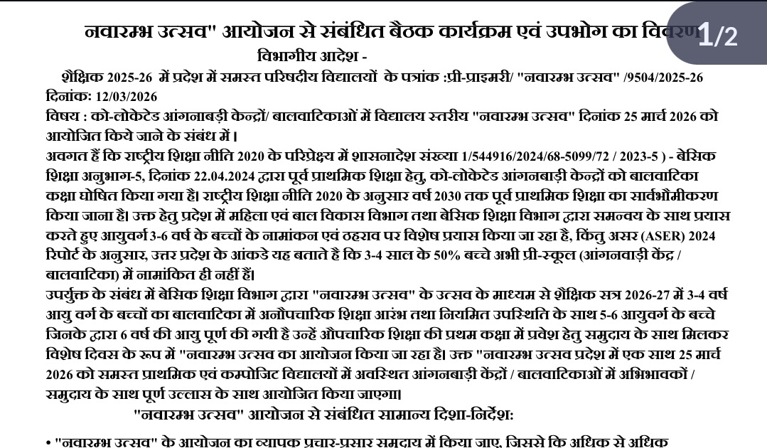 नवारम्भ उत्सव” आयोजन से संबंधित बैठक कार्यक्रम एवं उपभोग का विवरण – UpdateMarts| PRIMARY KA MASTER | SHIKSHAMITRA | Basic Shiksha News