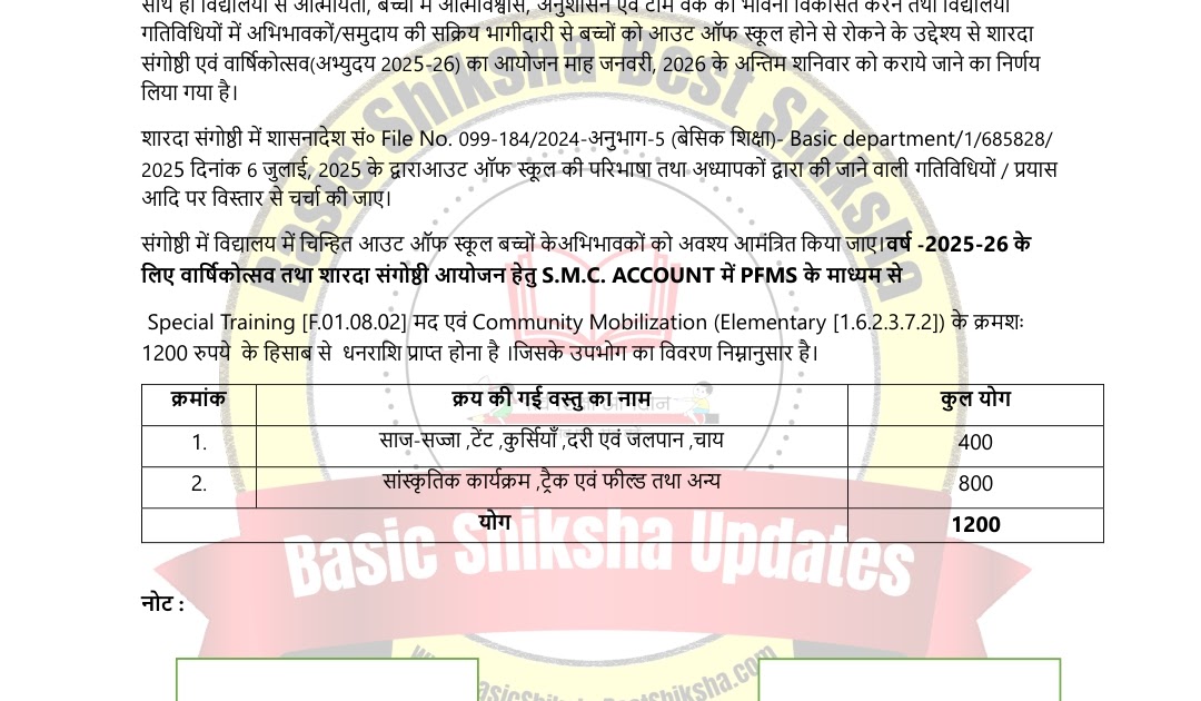 वार्षिकोत्सव हेतु उपभोग विवरण वर्ष -2025-26 – UpdateMarts| PRIMARY KA MASTER | SHIKSHAMITRA | Basic Shiksha News