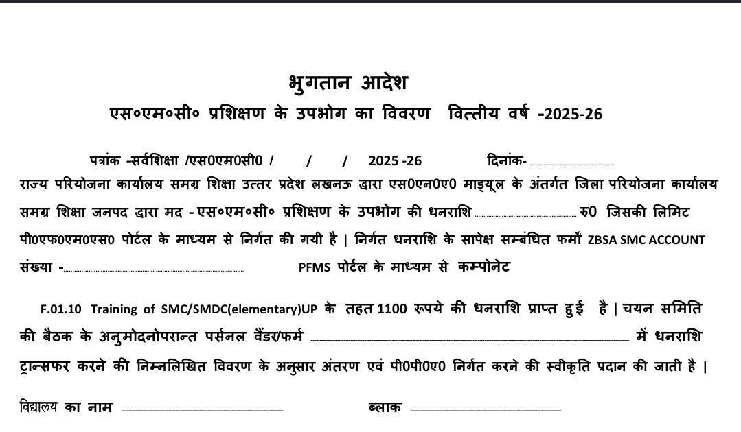 एस०एम०सी० प्रशिक्षण के उपभोग का विवरण वित्तीय वर्ष -2025-26 – UpdateMarts| PRIMARY KA MASTER | SHIKSHAMITRA | Basic Shiksha News