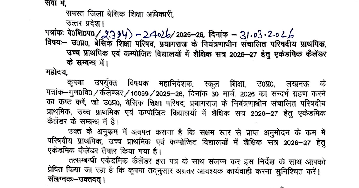 परिषदीय प्राथमिक, उच्च प्राथमिक एवं कम्पोजिट विद्यालयों में शैक्षिक सत्र 2026-27 हेतु एकेडमिक कैलेंडर जारी, देखें – UpdateMarts| PRIMARY KA MASTER | SHIKSHAMITRA | Basic Shiksha News