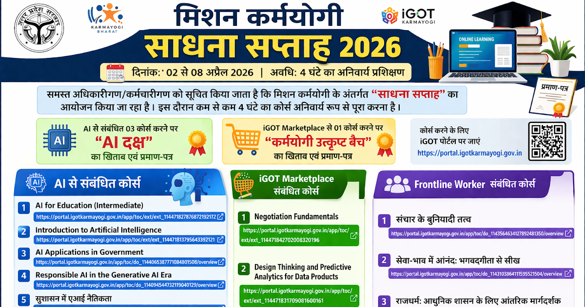 📰 मिशन कर्मयोगी “साधना सप्ताह” मिशन कर्मयोगी साधना सप्ताह 2026 📅 02 से 08 अप्रैल 2026 | 🎯 अनिवार्य प्रशिक्षण ...