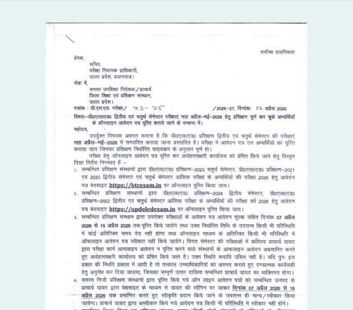 डीएलएड. द्वितीय और चतुर्थ सेमेस्टर का परीक्षा फॉर्म 7 अप्रैल से 15 अप्रैल तक भरा जाएगा💥💯✅ – UpdateMarts| PRIMARY KA MASTER | SHIKSHAMITRA | Basic Shiksha News