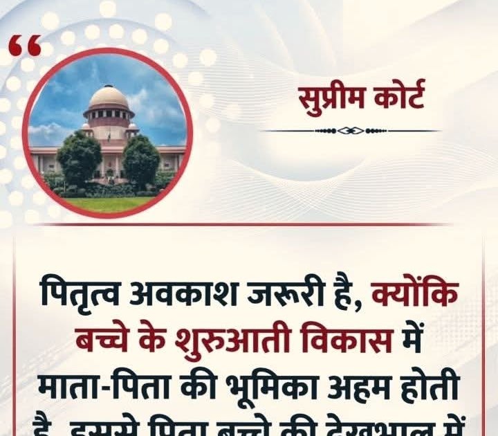 पितृत्व अवकाश पर सुप्रीम कोर्ट की अहम टिप्पणी बच्चे के शुरुआती विकास में पिता की भूमिका भी जरूरी सुप्रीम कोर्ट ...