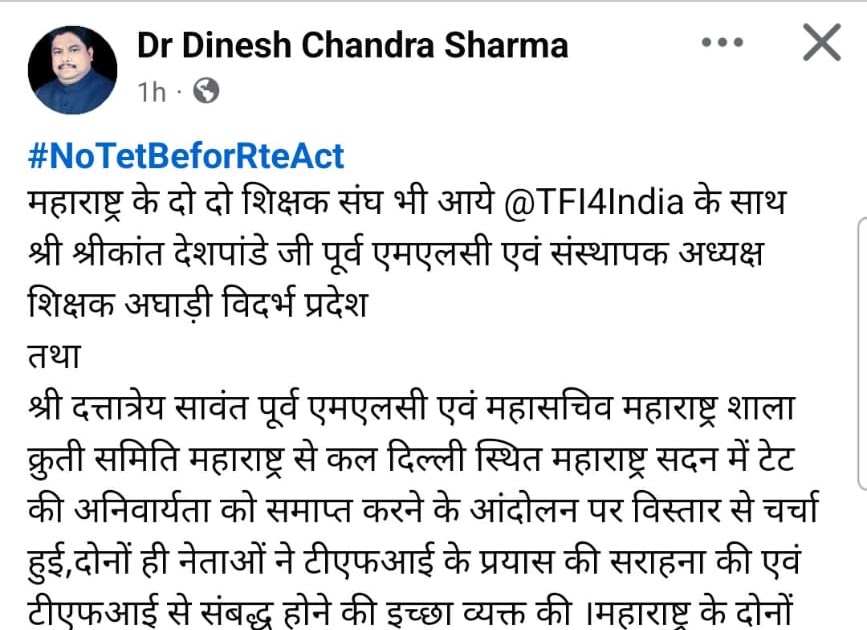 #NoTetBeforeRteAct: महाराष्ट्र के शिक्षक संगठनों ने टेट अनिवार्यता खत्म करने की मांग को दिया समर्थन नई दिल्ली। टेट (TET) ...