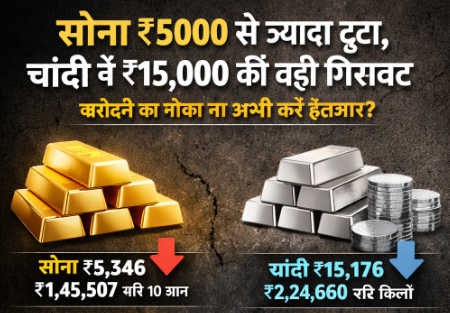 सोना ₹5000 से ज्यादा टूटा, चांदी में ₹15,000+ की बड़ी गिरावट — खरीदने का मौका या अभी करें इंतजार? ...