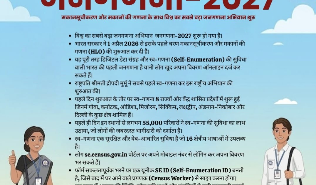 जनगणना-2027 : मकानसूचीकरण और मकानों की गणना के साथ विश्व का सबसे बड़ा जनगणना अभियान शुरू पहली बार डिजिटल ...