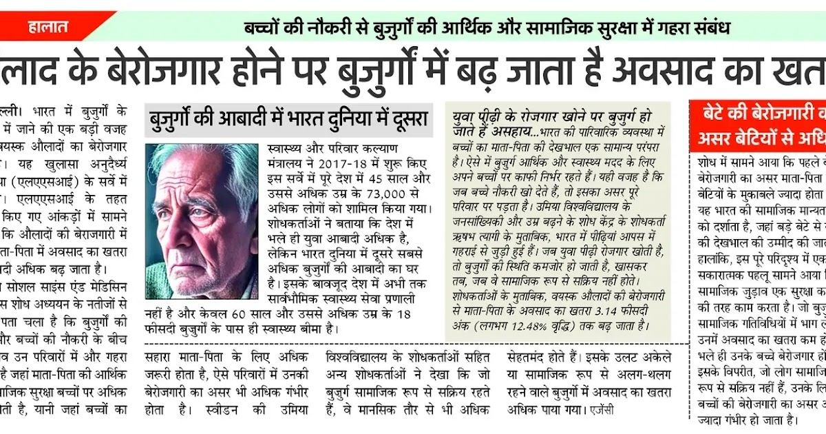 औलाद के बेरोजगार होने पर बुजुर्गों में बढ़ जाता है अवसाद का खतरा – UpdateMarts| PRIMARY KA MASTER | SHIKSHAMITRA | Basic Shiksha News
