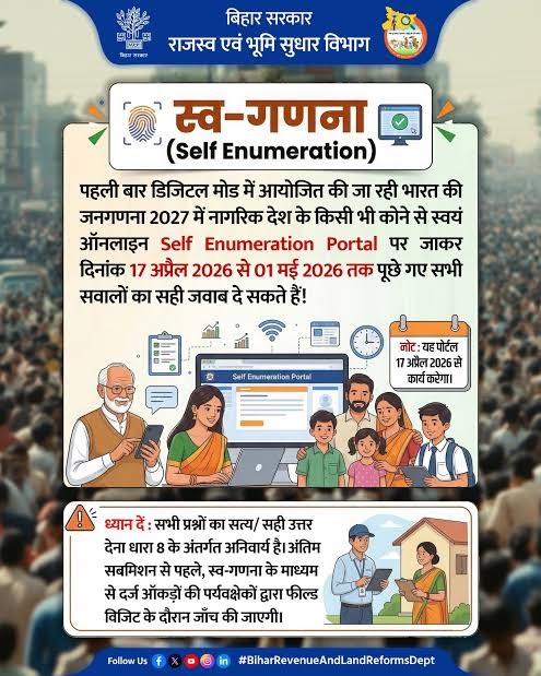 भारत में जनगणना 2026-27 पूरी तरह से डिजिटल हो गई है। आप आधिकारिक पोर्टल se.census.gov.in पर जाकर खुद ही ...