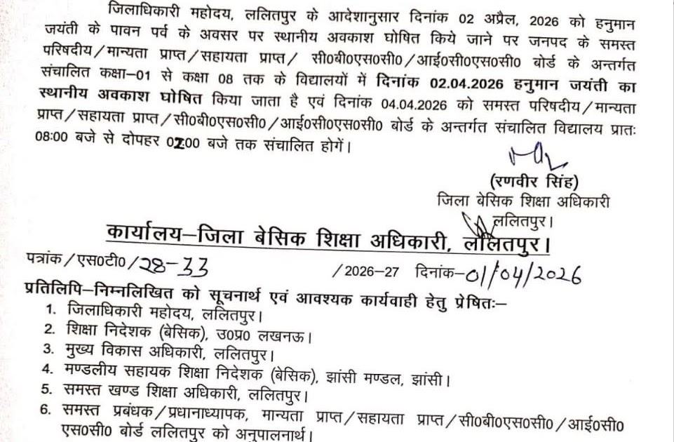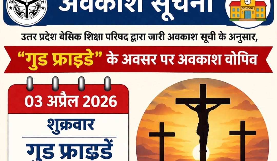 📰 अवकाश सूचना: 3 अप्रैल 2026 को रहेगा ‘गुड फ्राइडे’ का अवकाश उत्तर प्रदेश बेसिक शिक्षा परिषद द्वारा जारी ...