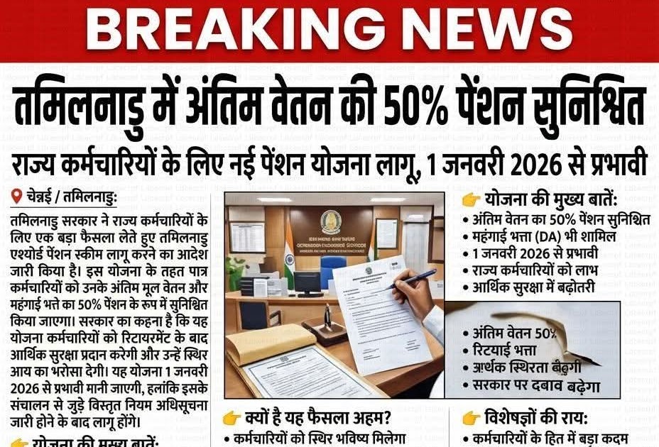 तमिलनाडु में अंतिम वेतन की 50% पेंशन सुनिश्चित राज्य कर्मचारियों के लिए नई पेंशन योजना लागू, 1 जनवरी 2026 से ...