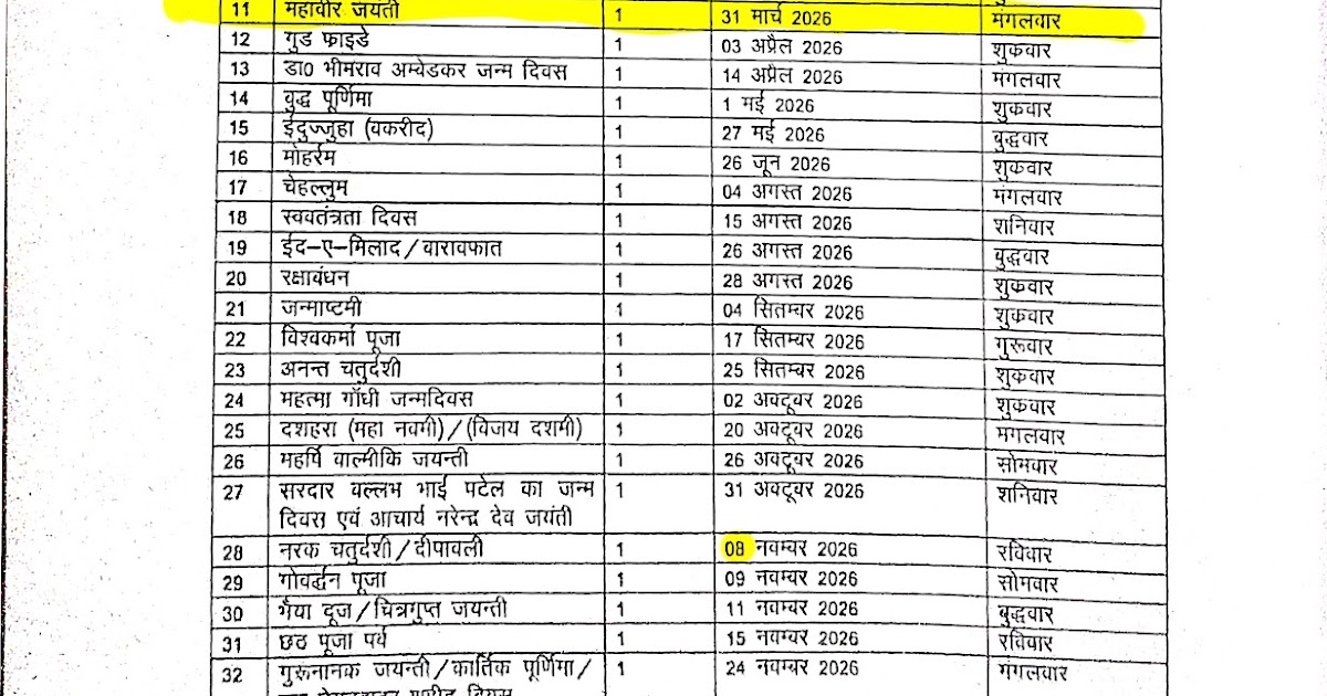 📰 अवकाश सूचना: 31 मार्च 2026 को रहेगा महावीर जयंती का सार्वजनिक अवकाश 📍 उत्तर प्रदेश | शिक्षा विभाग ...