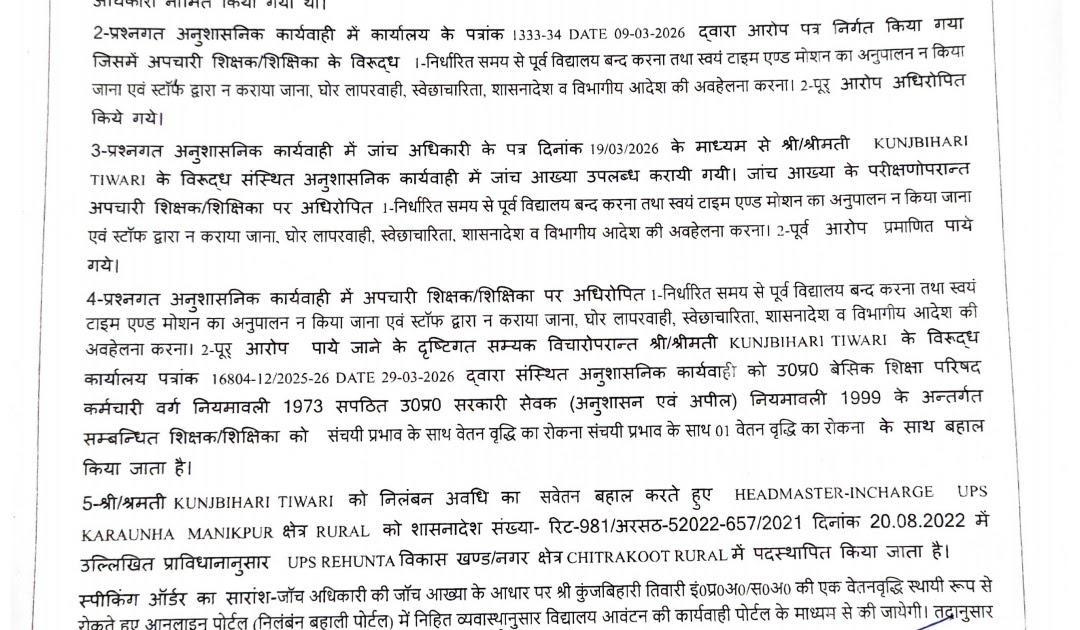 निलंबन के बाद बहाली एवं वेतन बहाल करने संबंधी आदेश – UpdateMarts| PRIMARY KA MASTER | SHIKSHAMITRA | Basic Shiksha News