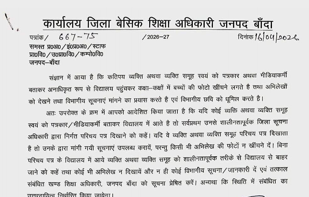 बड़ा आदेश: बिना अनुमति स्कूल में फोटो/वीडियो लेने वाले ‘फर्जी पत्रकारों’ पर सख्ती, BSA ने जारी किए निर्देश Basic ...