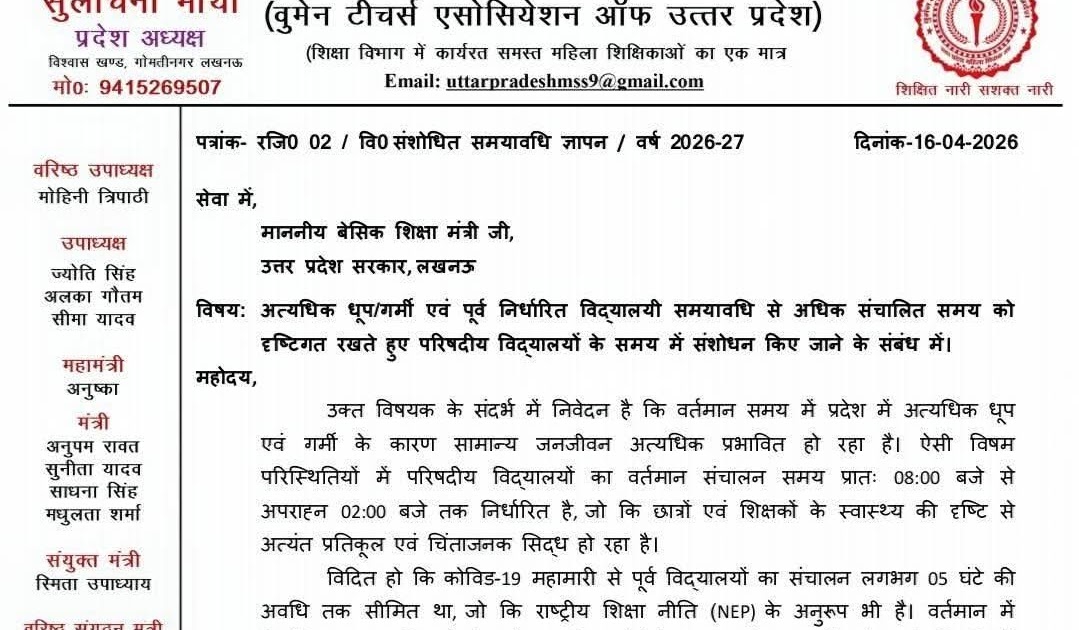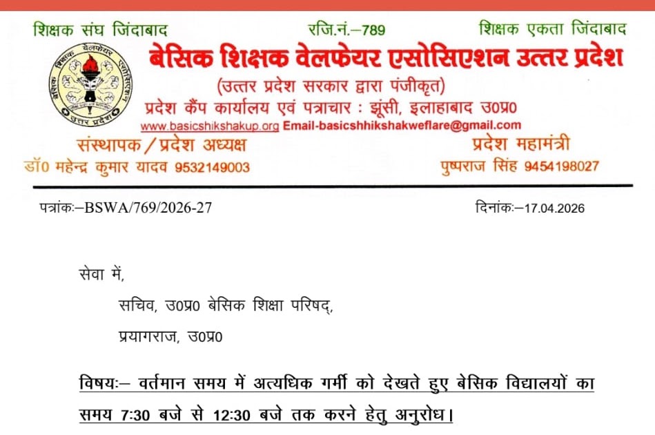 गर्मी में समय परिवर्तन हेतु बेसिक शिक्षक वेलफेयर एसोसिएशन का प्रयास। – UpdateMarts| PRIMARY KA MASTER | SHIKSHAMITRA | Basic Shiksha News