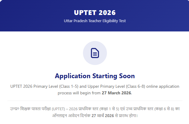 उ०प्र० शिक्षा सेवा चयन आयोग द्वारा उ०प्र० शिक्षक पात्रता परीक्षा (UPTET) – 2026 प्राथमिक स्तर (कक्षा–1 से 5) एवं उच्च ...