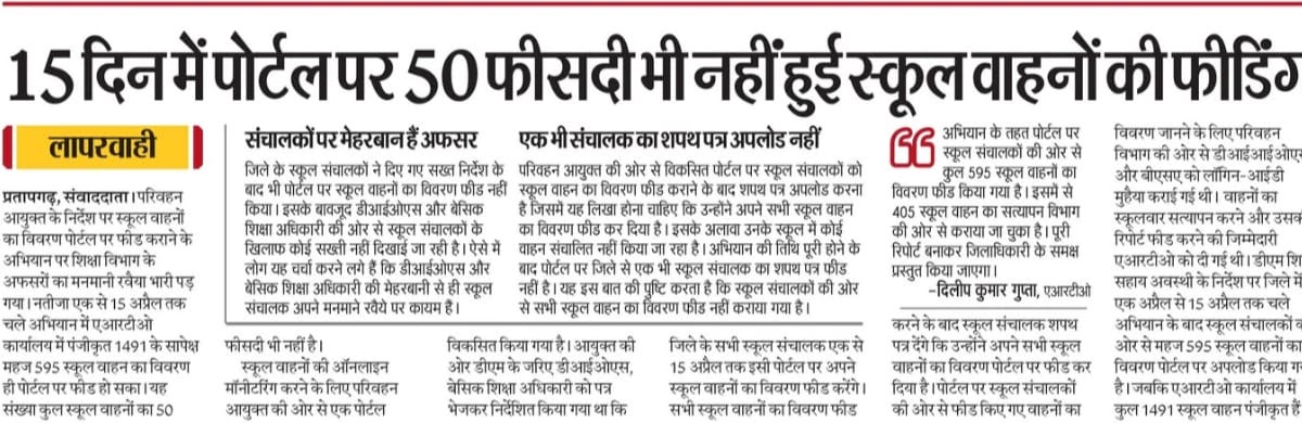 15 दिन में पोर्टल पर 50 फीसदी भी नहीं हुई स्कूल वाहनों की फीडिंग – UpdateMarts| PRIMARY KA MASTER | SHIKSHAMITRA | Basic Shiksha News