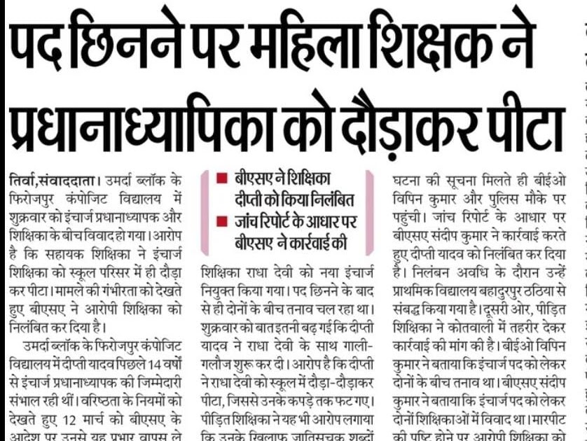 पद छिनने पर महिला शिक्षक ने प्रधानाध्यापिका को दौड़ाकर पीटा – UpdateMarts| PRIMARY KA MASTER | SHIKSHAMITRA | Basic Shiksha News