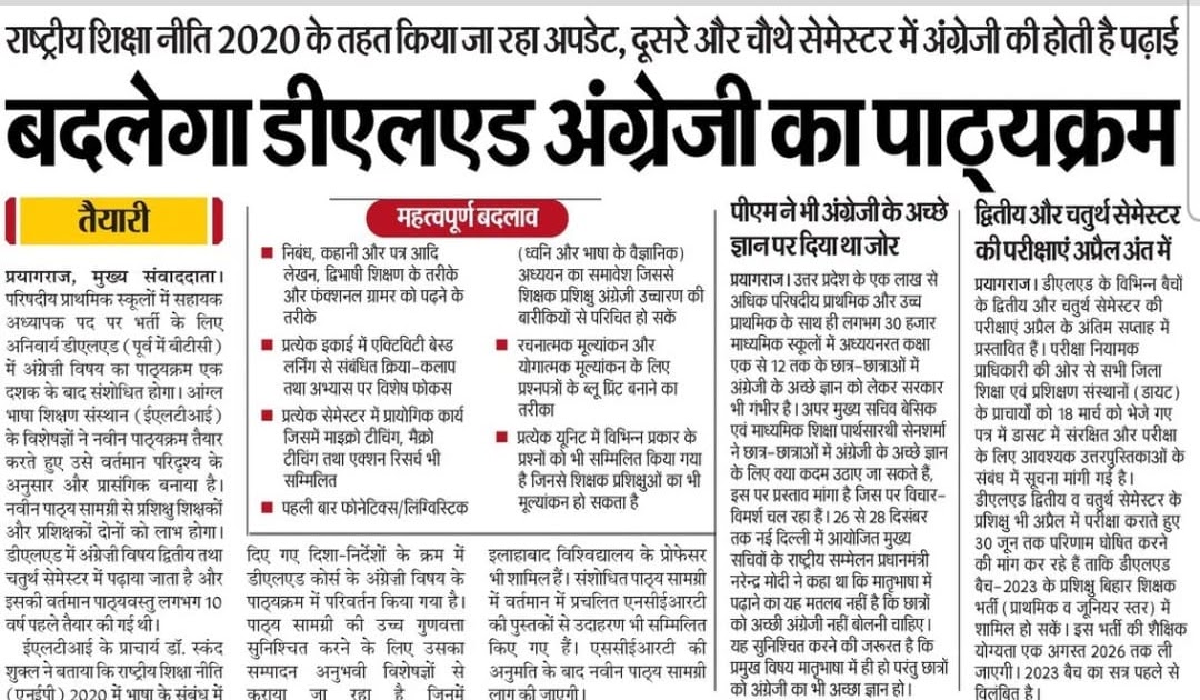 बदलेगा डीएलएड अंग्रेजी का पाठ्यक्रम – UpdateMarts| PRIMARY KA MASTER | SHIKSHAMITRA | Basic Shiksha News