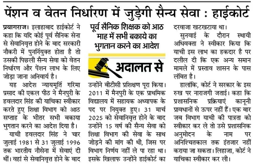 पेंशन व वेतन निर्धारण में जुड़ेगी सैन्य सेवा : हाईकोर्ट – UpdateMarts| PRIMARY KA MASTER | SHIKSHAMITRA | Basic Shiksha News