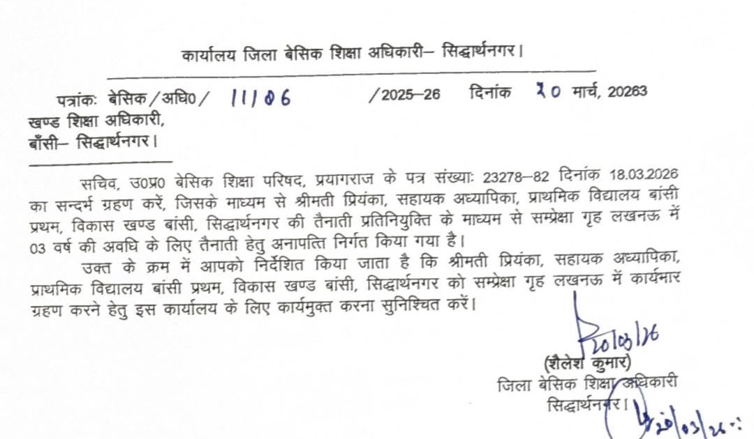 सम्भागीय आदेश: सहायक अध्यापिका की 3 वर्ष हेतु सम्प्रेक्षा गृह लखनऊ में तैनाती – UpdateMarts| PRIMARY KA MASTER | SHIKSHAMITRA | Basic Shiksha News