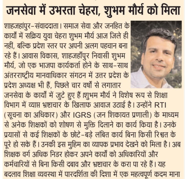 जनसेवा में उभरता चेहरा, शुभम मौर्य को मिला: शिक्षा विभाग में महत्वपूर्ण योगदान – UpdateMarts| PRIMARY KA MASTER | SHIKSHAMITRA | Basic Shiksha News