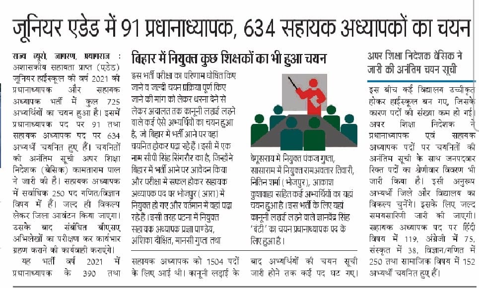 जूनियर एडेड में 91 प्रधानाध्यापक, 634 सहायक अध्यापकों का चयन – UpdateMarts| PRIMARY KA MASTER | SHIKSHAMITRA | Basic Shiksha News