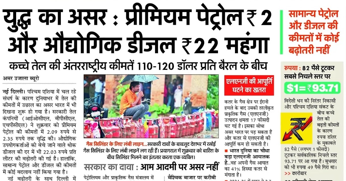 युद्ध का असर : प्रीमियम पेट्रोल ₹ 2 और औद्योगिक डीजल ₹22 महंगा, समान्य अभी स्थिर – UpdateMarts| PRIMARY KA MASTER | SHIKSHAMITRA | Basic Shiksha News