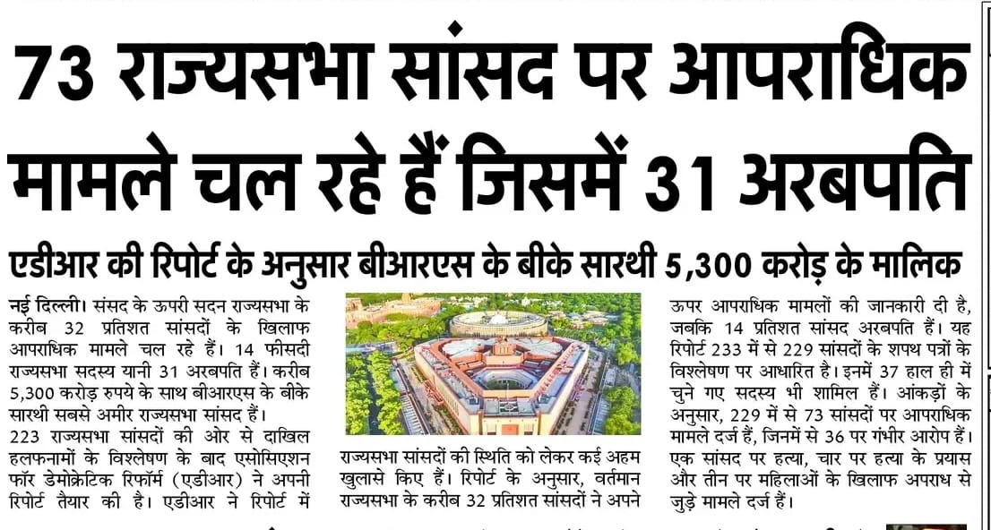 73 राज्यसभा सांसद पर आपराधिक मामले चल रहे हैं जिसमें 31 अरबपति – UpdateMarts| PRIMARY KA MASTER | SHIKSHAMITRA | Basic Shiksha News