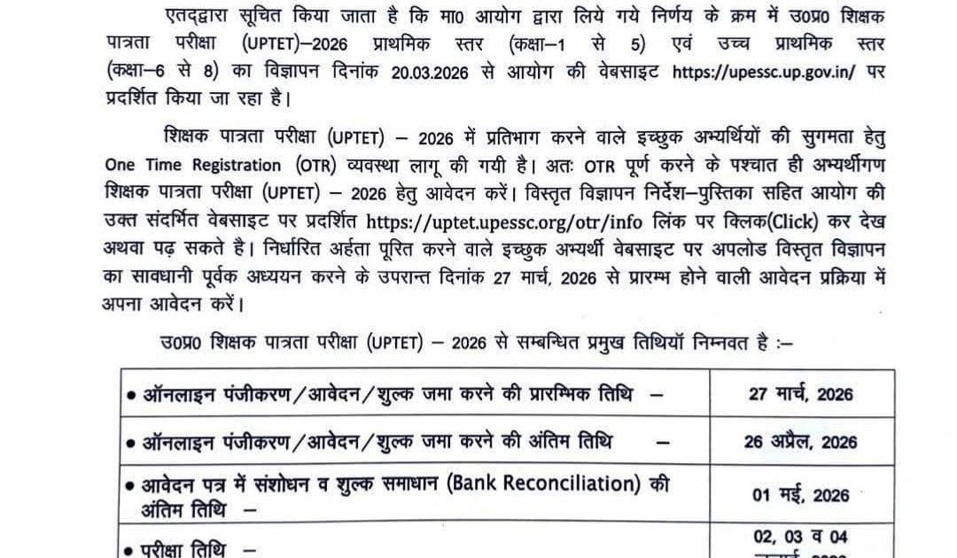 UP TET विज्ञप्ति संक्षिप्त-विज्ञप्ति एतद्वारा सूचित किया जाता है कि मा० आयोग द्वारा लिये गये निर्णय के क्रम में ...