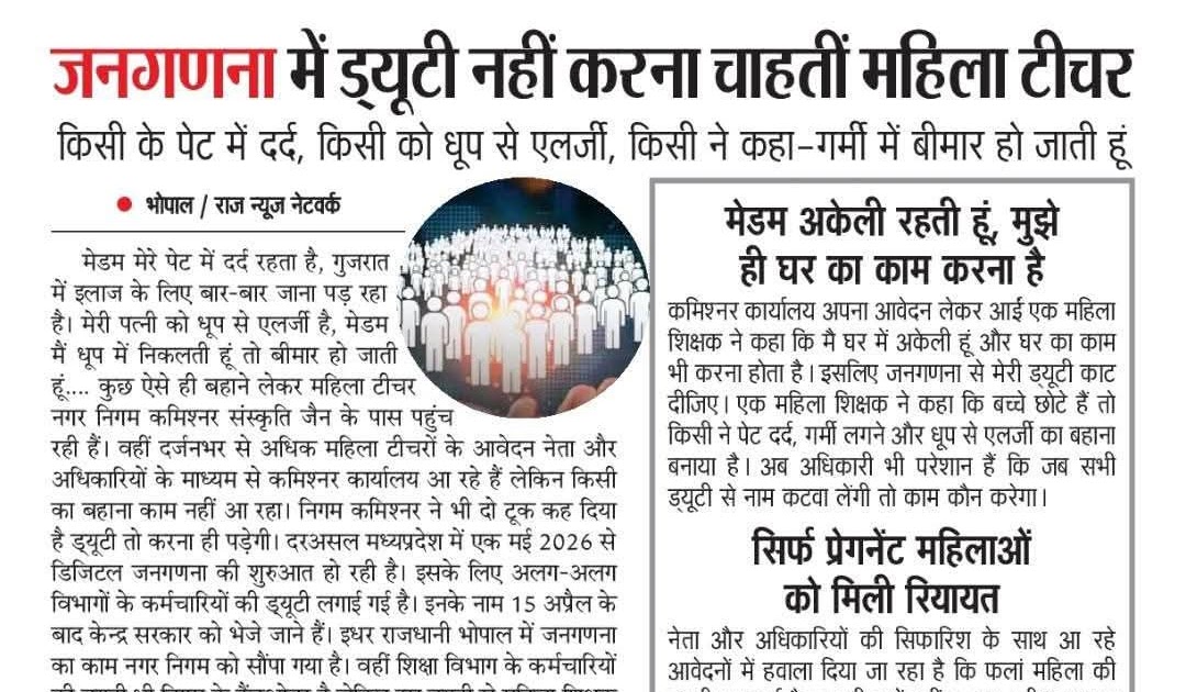 जनगणना में ड्यूटी नहीं करना चाहतीं महिला टीचर, MP में सिर्फ इनको मिली राहत – UpdateMarts| PRIMARY KA MASTER | SHIKSHAMITRA | Basic Shiksha News