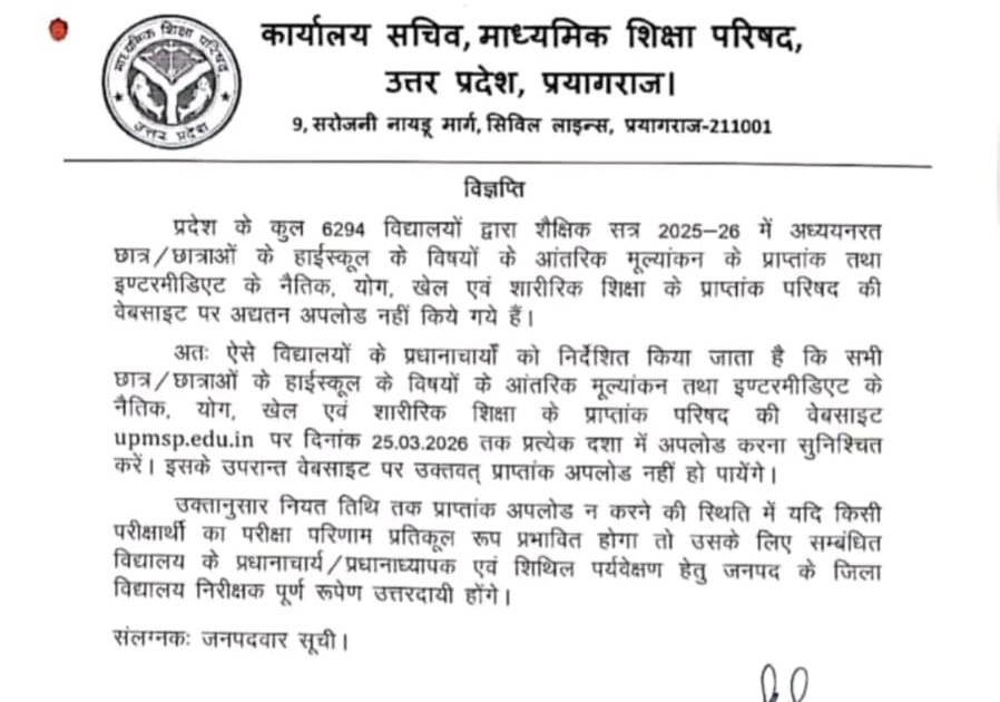 माध्यमिक:-आंतरिक मूल्यांकन के प्राप्तांक अपलोड किए जाने के संबंध में – UpdateMarts| PRIMARY KA MASTER | SHIKSHAMITRA | Basic Shiksha News