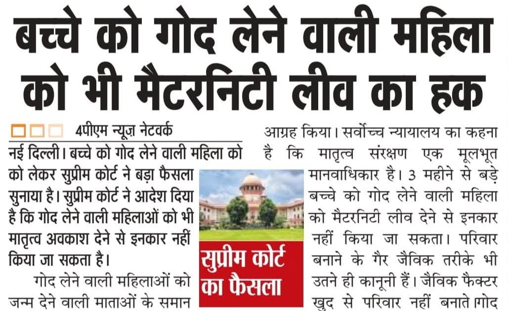 बच्चे को गोद लेने वाली महिला को भी मैटरनिटी लीव का हक – UpdateMarts| PRIMARY KA MASTER | SHIKSHAMITRA | Basic Shiksha News