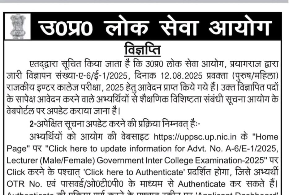 उत्तर प्रदेश लोक सेवा आयोग द्वारा जारी राजकीय इंटर कॉलेज प्रवक्ता के विज्ञापित पदों के सापेक्ष आवेदन करने वाले अभ्यर्थियों से शैक्षणिक योग्यता अपडेट कराने के संदर्भ में – UpdateMarts| PRIMARY KA MASTER | SHIKSHAMITRA | Basic Shiksha News