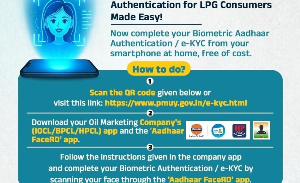 स्पष्टीकरण: एलपीजी उपभोक्ताओं के लिए बायोमेट्रिक आधार प्रमाणीकरण (ईकेवाईसी) केवल उन एलपीजी उपभोक्ताओं के लिए आवश्यक है जिनका पंजीकरण ...