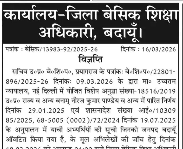 *29334 गणित-विज्ञान शिक्षक भर्ती , 18 मार्च को काउंसिलिंग के संबंध में बदायूं जनपद की विज्ञप्ति जारी*✅ Basic Shiksha ...