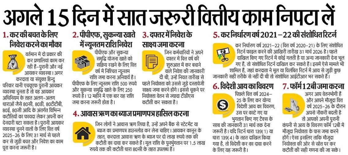 ध्यान दें चालू वित्त वर्ष समाप्त होने में सिर्फ 15 दिन बाकी हैं। 31 मार्च तक कई वित्तीय काम ...