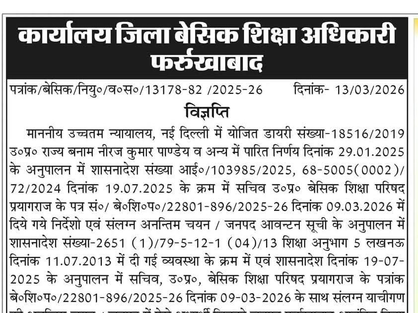 *29334 विज्ञान और गणित* याची अभ्यर्थियों की काउंसलिंग के संबंध में *फर्रुखाबाद* जिले की विज्ञप्ति – UpdateMarts| PRIMARY KA MASTER | SHIKSHAMITRA | Basic Shiksha News
