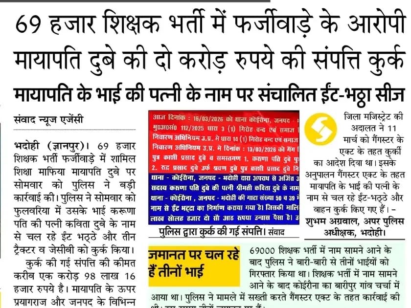 69 हजार शिक्षक भर्ती में फर्जीवाड़े के आरोपी मायापति दुबे की दो करोड़ रुपये की संपत्ति कुर्क – UpdateMarts| PRIMARY KA MASTER | SHIKSHAMITRA | Basic Shiksha News