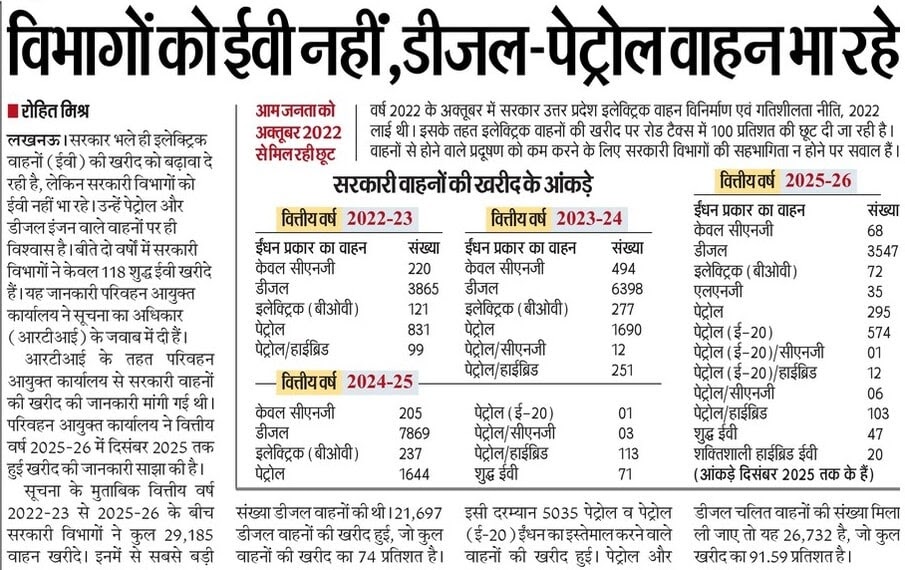 विभागों को ईवी नहीं ,डीजल-पेट्रोल वाहन भा रहे – UpdateMarts| PRIMARY KA MASTER | SHIKSHAMITRA | Basic Shiksha News