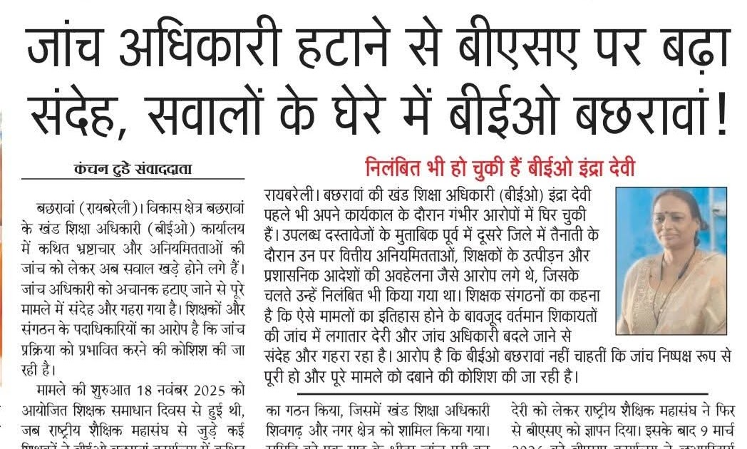 जांच अधिकारी हटाने से बीएसए पर बढ़ा संदेह, सवालों के घेरे में बीईओ बछरावां ! – UpdateMarts| PRIMARY KA MASTER | SHIKSHAMITRA | Basic Shiksha News