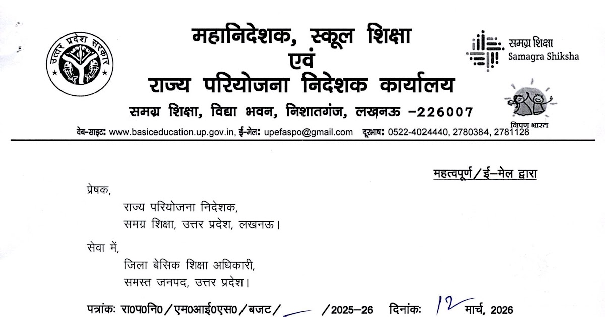 वर्ष 2025-26 की वार्षिक कार्ययोजना एवं बजट में Monitoring of the Scheme के अंतर्गत *Child Tracking System एवं MIS (UDISE+) हेतु धनराशि की लिमिट* जनपदों को जारी करने के संबंध में। – UpdateMarts| PRIMARY KA MASTER | SHIKSHAMITRA | Basic Shiksha News