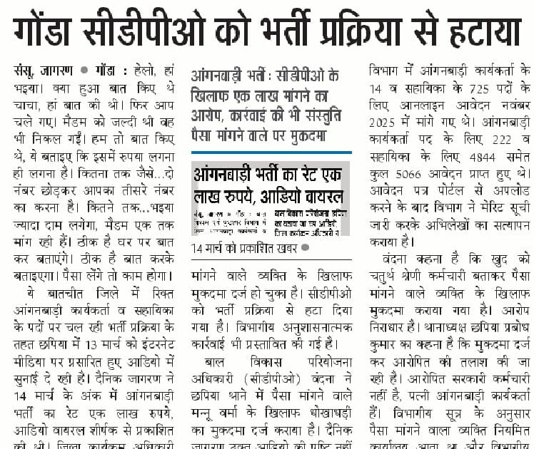 आंगनवाड़ी भतीं सीडीपीओ के खिलाफ एक लाख मांगने का आरोप, कार्रवाई की भी संस्तुति पैसा मांगने वाले पर मुकदमा ...