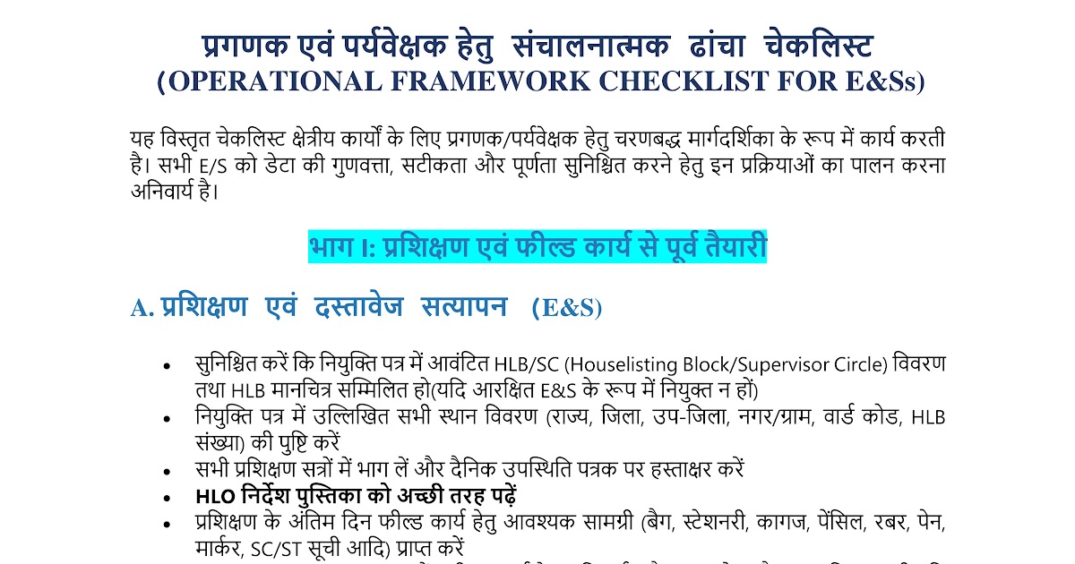 जनगणना : प्रगणक एवं पर्यवेक्षक हेतु संचालनात्मक ढांचा चेकलिस्ट – UpdateMarts| PRIMARY KA MASTER | SHIKSHAMITRA | Basic Shiksha News
