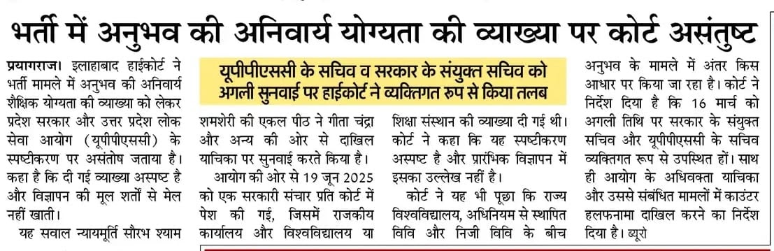 भर्ती में अनुभव की अनिवार्य योग्यता की व्याख्या पर कोर्ट असंतुष्ट – UpdateMarts| PRIMARY KA MASTER | SHIKSHAMITRA | Basic Shiksha News