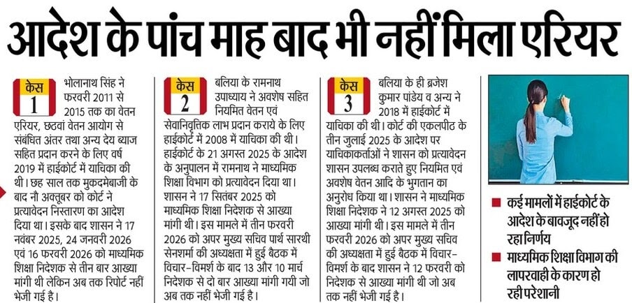 प्रयागराज। सुप्रीम कोर्ट और हाईकोर्ट के आदेशों के बावजूद लंबे समय से लंबित पड़े मामलों को लेकर माध्यमिक शिक्षा ...