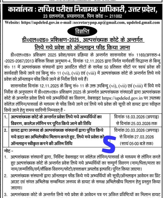 डी०एल०एड० प्रशिक्षण-2025, अल्पसंख्यक कोटे के अन्तर्गत लिये गये प्रवेश को ऑनलाइन फीड किया जाना – UpdateMarts| PRIMARY KA MASTER | SHIKSHAMITRA | Basic Shiksha News