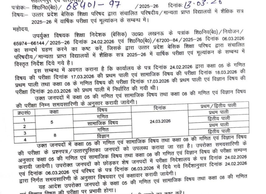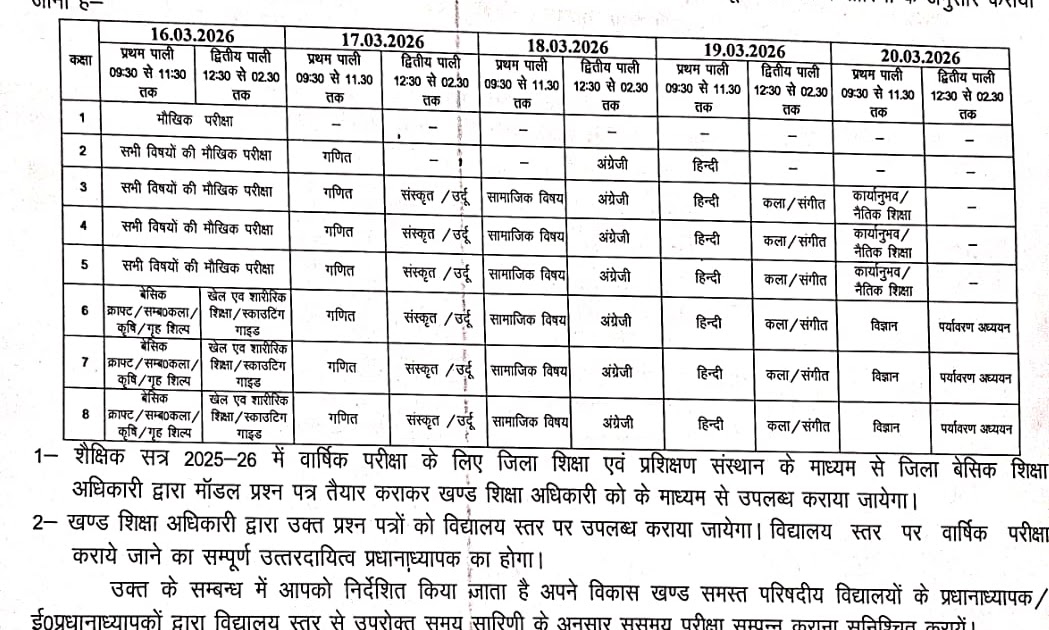 उत्तर प्रदेश बेसिक शिक्षा परिषद द्वारा संचालित परिषदीय/मान्यता प्राप्त विद्यालयों में शैक्षिक सत्र 2025-26 में वार्षिक परीक्षा कराने के सम्बन्ध में। – UpdateMarts| PRIMARY KA MASTER | SHIKSHAMITRA | Basic Shiksha News