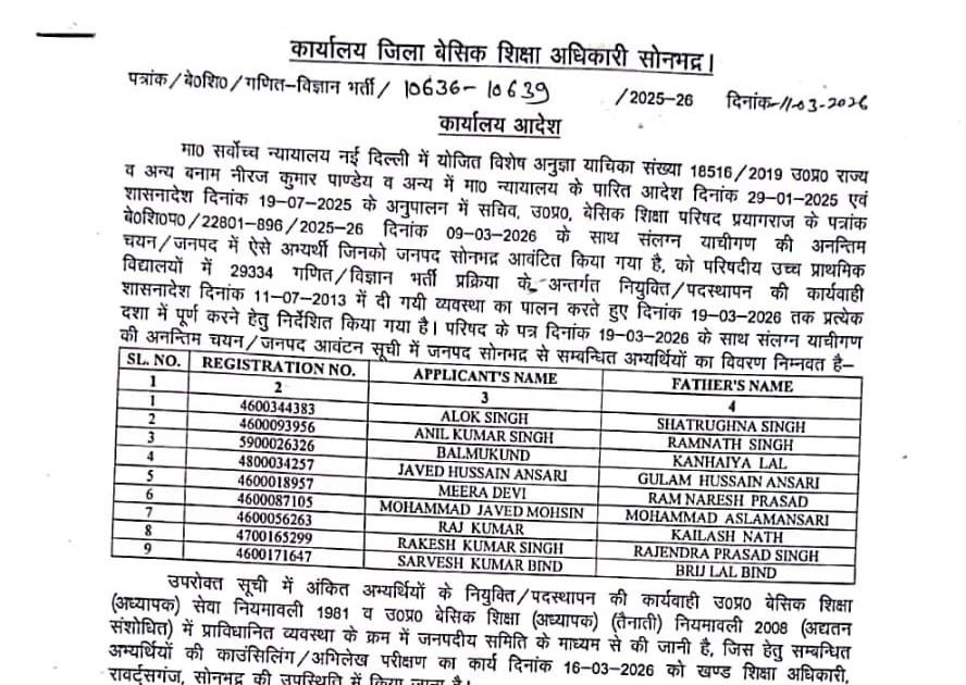 *29334 गणित-विज्ञान शिक्षक भर्ती , 16 मार्च को काउंसिलिंग के संबंध में BSA सोनभद्र जनपद का आदेश जारी*✅ – UpdateMarts| PRIMARY KA MASTER | SHIKSHAMITRA | Basic Shiksha News