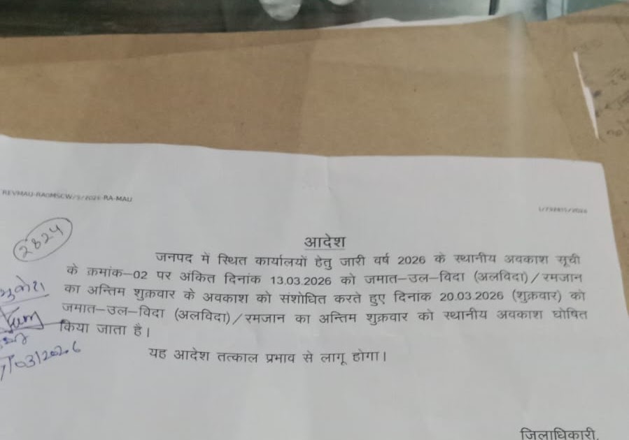 DM का नया आदेश: जुमात-उल-विदा की छुट्टी 13 मार्च की जगह 20 मार्च को घोषित – UpdateMarts| PRIMARY KA MASTER | SHIKSHAMITRA | Basic Shiksha News