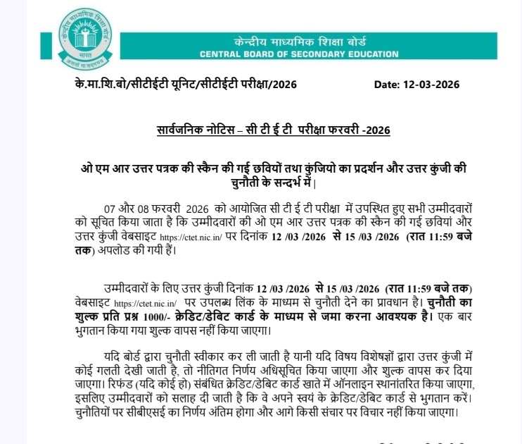 सीटीईटी की आज जारी आंसर-की को चुनौती देने का शुल्क प्रति प्रश्न ₹1000, देखें सम्बंधित विज्ञप्ति – UpdateMarts| PRIMARY KA MASTER | SHIKSHAMITRA | Basic Shiksha News